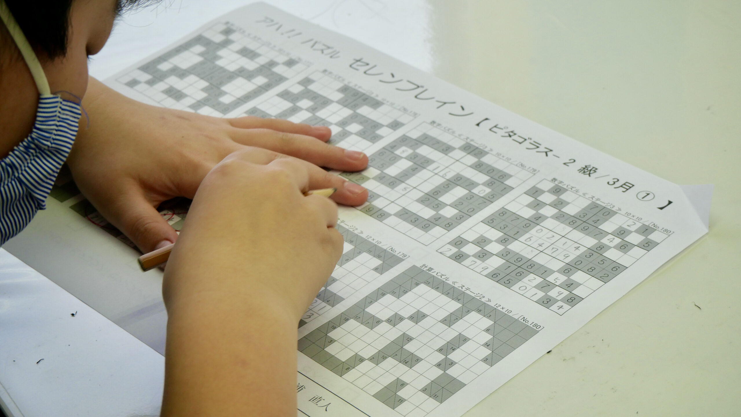 セレンブレインは、脳科学をもとに開発したオリジナルの思考力トレーニング教材です。数字やパターンを使ったパズル型の課題で、楽しみながら集中力・論理的思考力・問題解決力を伸ばしていきます。